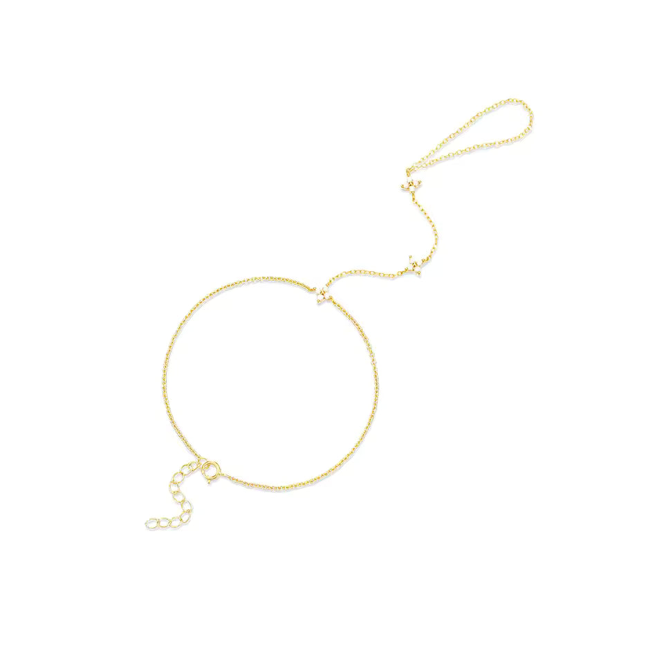Delicate florals meet sparkle in this charming hand chain! Three gorgeous cubic zirconia flower charms dangle gracefully along an adjustable chain, perfect for adding a touch of botanical brilliance to your wrist. Whether you're dressing up for a night out or elevating your everyday look, this playful piece brings instant elegance and a hint of nature-inspired glamour. Stack it with your favourite bracelets or wear it solo—either way, you'll be blooming with style.