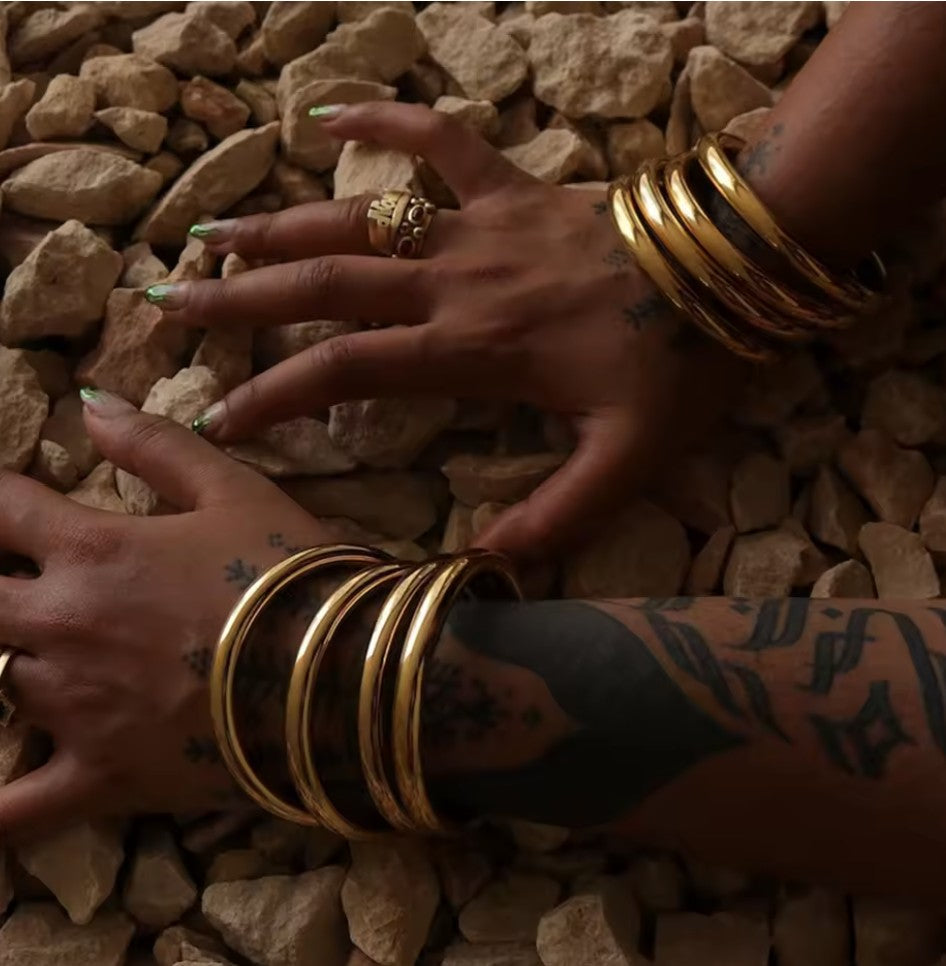 Effortless elegance meets everyday wear with this sleek gold bracelet. Minimalist in design yet maximum in impact, it's the kind of piece that pairs seamlessly with everything in your wardrobe, from casual coffee runs to dressed up nights out. The warm gold tone flatters all skin tones and adds that perfect touch of polish without trying too hard. Stack it, layer it, or let it shine solo. Your new go-to accessory awaits.